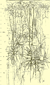 In the late 1800s and early 1900s several advances in histological preparation led to a boom in cellular studies of the visual cortex. Better chemical treatments were found for hardening the brain prior to cutting thin slices; gross neuronal and fiber staining dye protocols were developed (e.g. those of Wigert and Nissl); and the Golgi technique for labeling individual cells complete with their extensive axonal and dendritic arborizations was established.