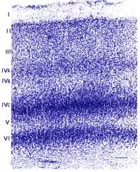 Figure 13. Nissl stain of the visual cortex reveals the different layers quite clearly
