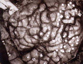 All of the progress described above is anatomical in nature. What about the function of the visual pathways? How were researchers approaching this issue in the late 1800s and early 1900s? Clinical cases described over the centuries already pointed to the functional specialization of discrete cortical areas. Experimental lesions within the cortex confirmed this notion. Electrical stimulation of the cortex (e.g. Hitzig and Fritsch on dog and monkey motor cortex) provided the coup de grace to the doctrine of functional equivalence and established the theory of functional cerebral localization in its place. Surgeons such as Penfield were mechanically stimulating the brains of conscious patients during operations and recording the sensations evoked (Fig. 7). The critical step in obtaining a functional map of the visual system, however, came when researchers moved from electrical stimulation to electrical recording.